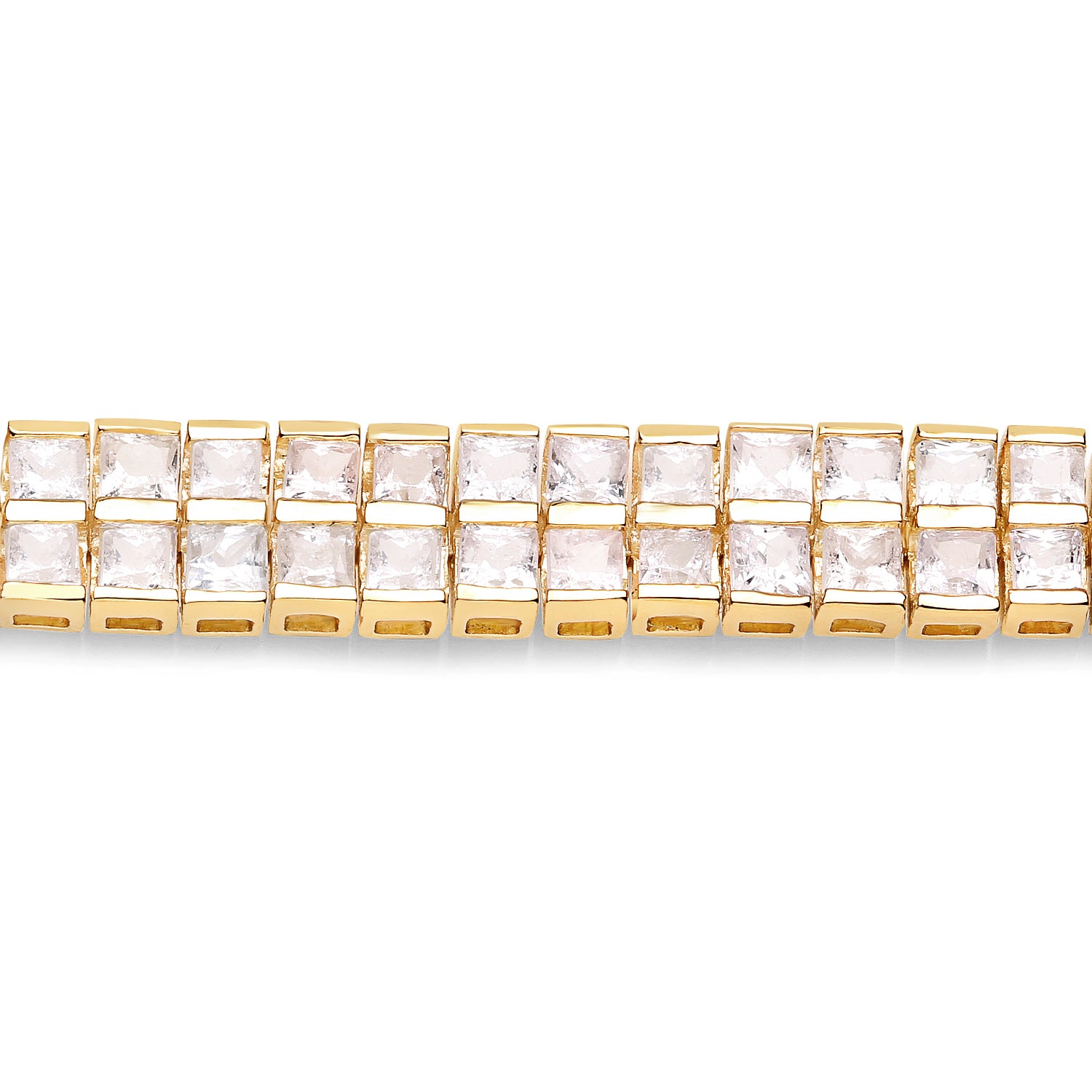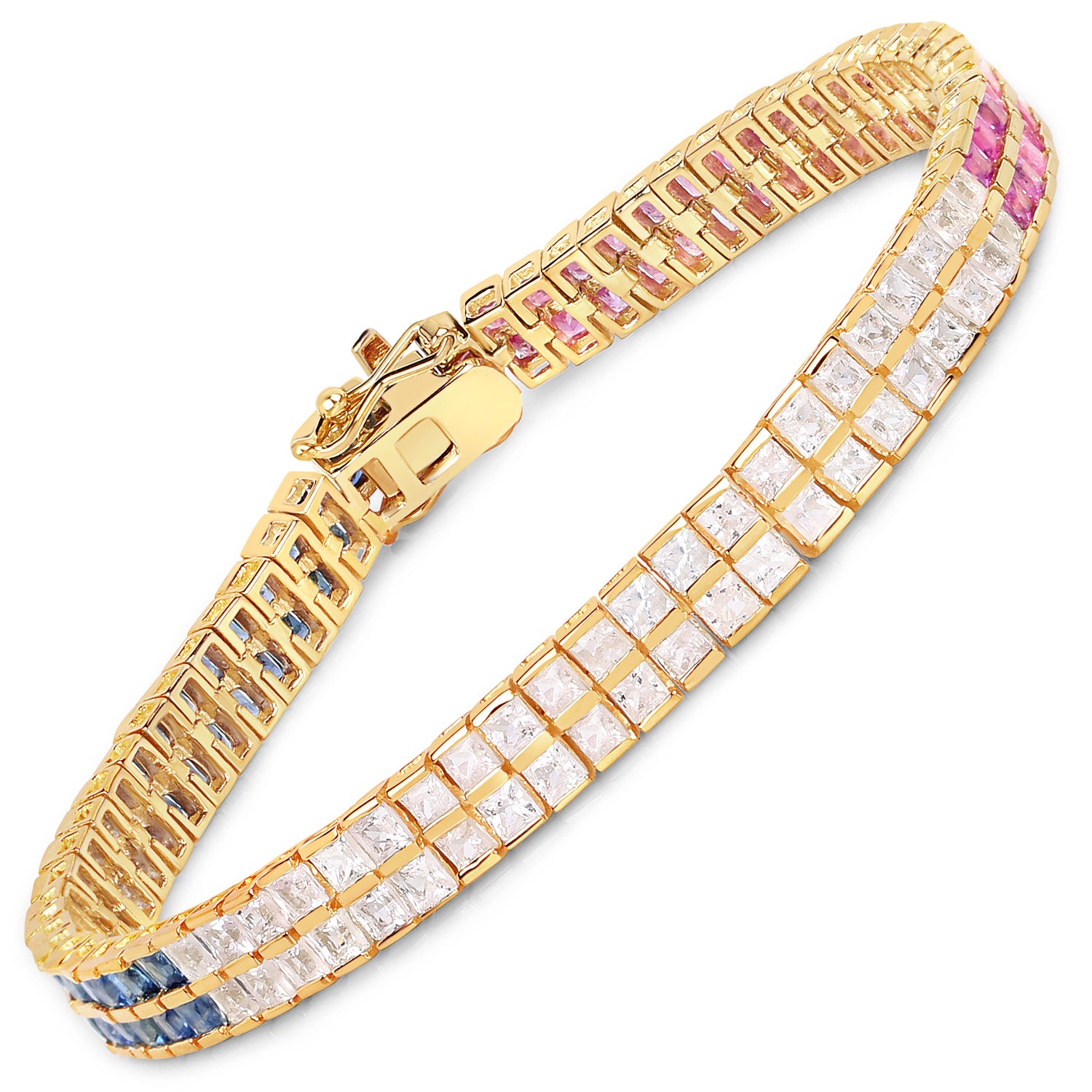 14K Yellow Gold Plated 9.52 Carat Genuine Blue Sapphire and White Sapphire .925 Sterling Silver Bracelet