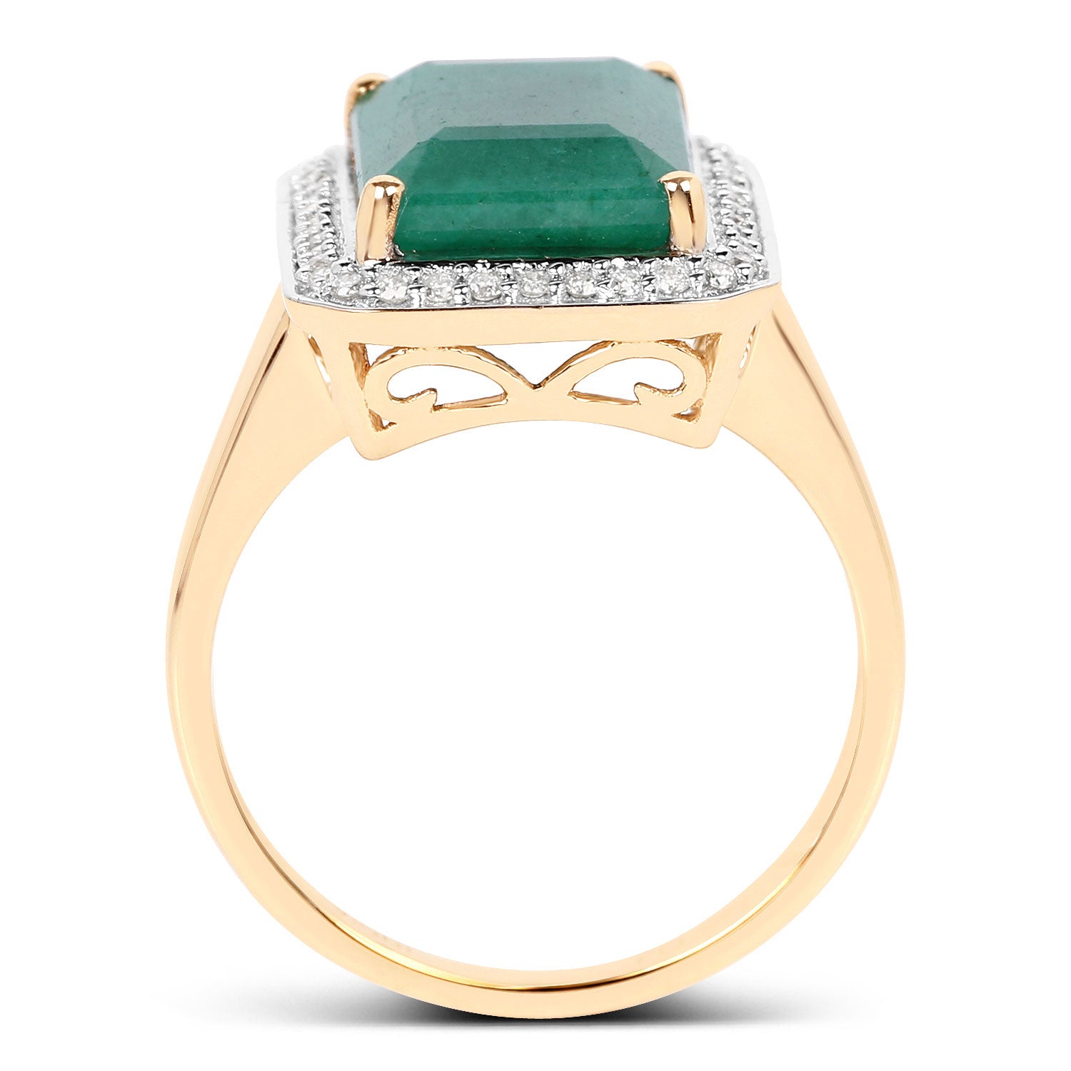 Elevate your elegance with this stunning 5.71 carat dyed emerald ring set in rich 14K yellow gold. The vivid emerald is beautifully complemented by sparkling white diamonds, creating a captivating contrast that draws the eye. Perfect for making a lasting impression, this ring is an irresistible choice for those who value timeless beauty and refined luxury.