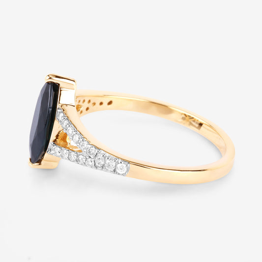 1.50 Carat Genuine Blue Sapphire and White Diamond 14K Yellow Gold Ring